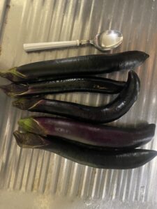 今が旬の茄子です、あとはベーコンです、ベーコンには生ベーコンがありますのでそれも少し入れます、味が抜群に良くなります、そして深みが増します、鍋(ここではフライパンを鍋と呼びます)にオリーブオイルを敷いてニンニクを入れて焦げるまで炒めます、焦げすぎはダメでやり直しです ベーコンと生ベーコン(パンチェッタ)を入れて炒めます、パンチェッタはよく炒めて下さい、生臭さが出てしまいます。